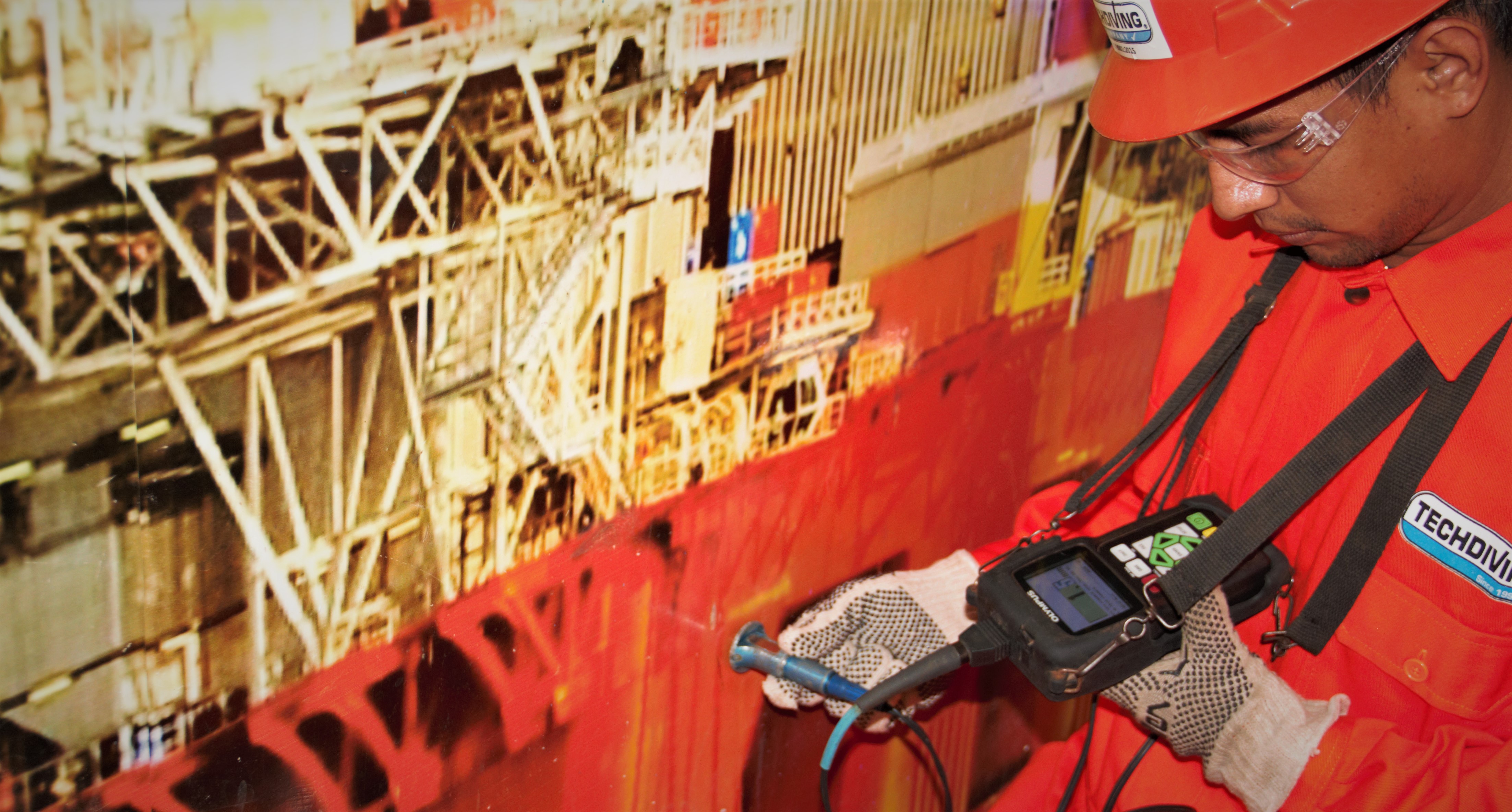 Thickness measurement realized by ultrasound, is used to calculate the real thickness of the materials in a broad range of industries, for quality control at the moment of the manufacture as for monitoring the wear during the service. Even though we can do thickness measurement services in any industrial, we specialize in the thickness measurement of ships, barges, drilling platforms, jack up platforms, semi-submersible platforms, holding tanks, conduction lines, drilling tools, cranes, etc.
