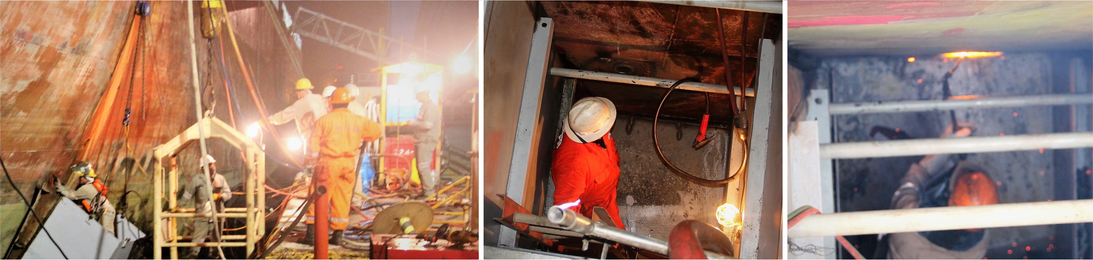 We have repaired holes and fissures of different sizes using cofferdam from 60 cms or in special cases up to 7.5 meters long for permanent afloat repair approved by class. In this case it was for a Jack Up Offshore unit`s legs.